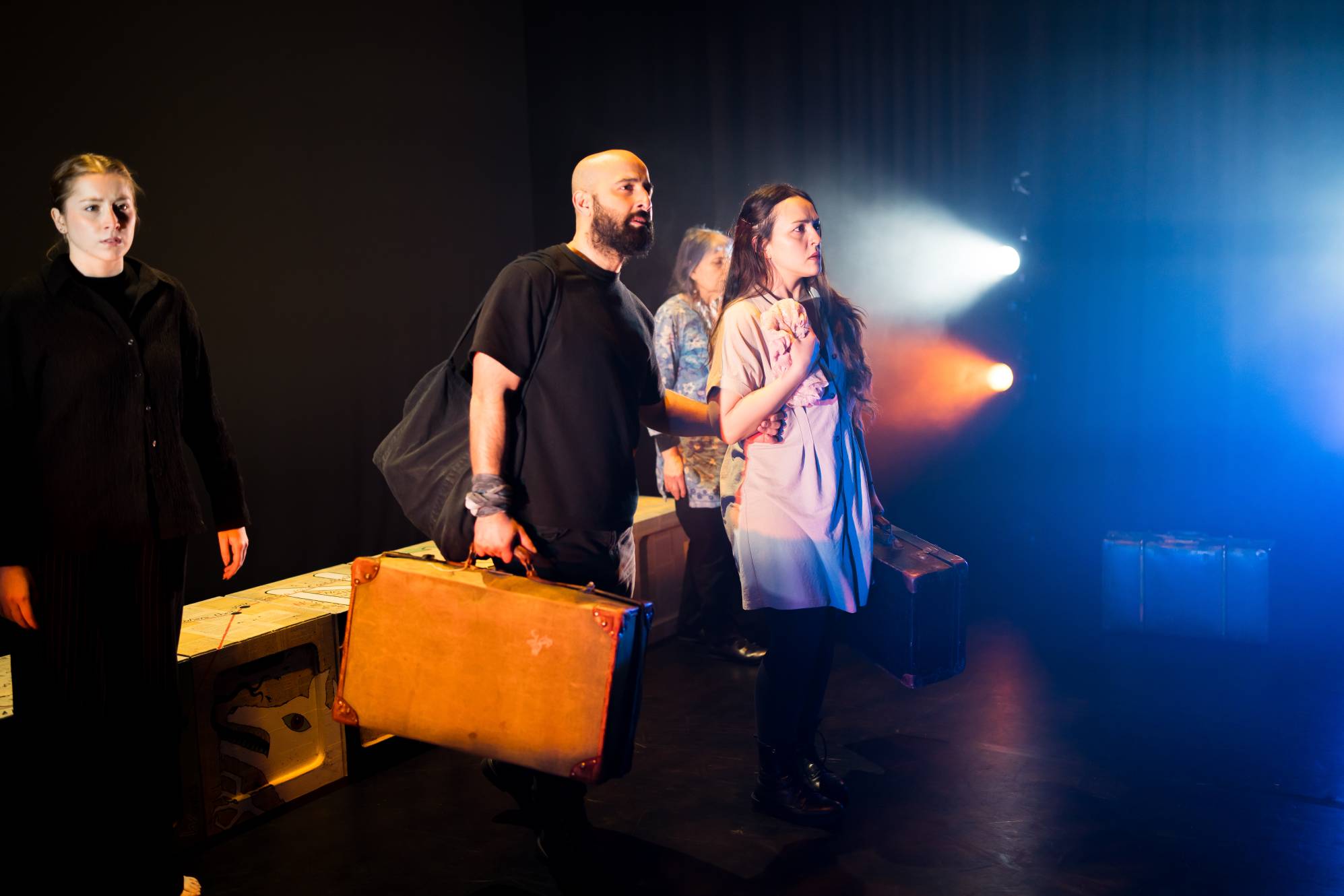 CONTENT WARNING: Please note this performance contains personal accounts of displacement, including loud sound effects (such as explosions), raised voices, references to migrant detention centres, and a scene depicting childbirth. These themes may be distressing for some audience members