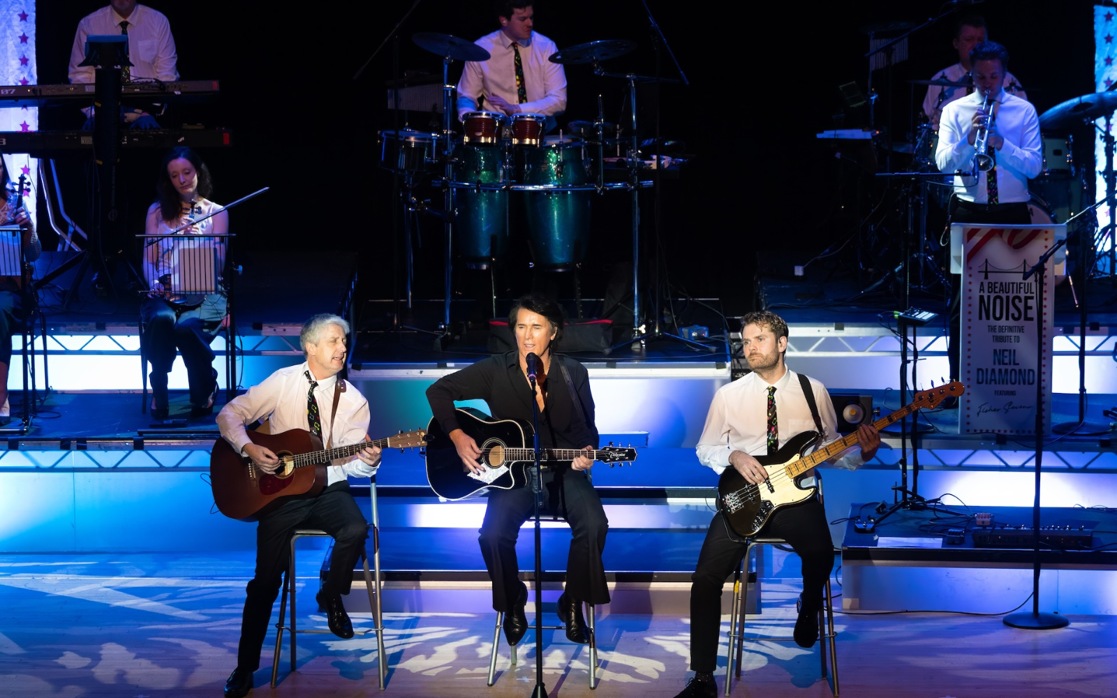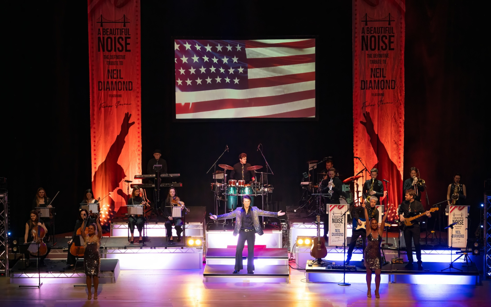 At the heart of it all is Fisher Stevens — widely acclaimed as the world’s finest Neil Diamond tribute performer. With pitch-perfect vocals, effortless charisma, and astonishing authenticity, Fisher doesn’t just sing the songs — he channels the legend. Close your eyes, and you’re there.