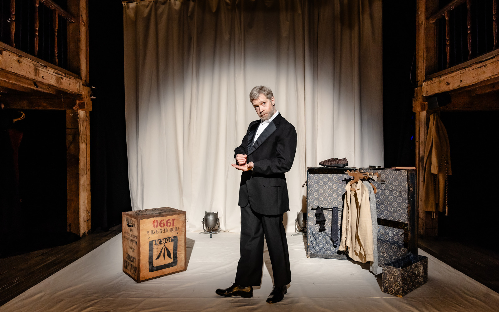 Acclaimed broadcaster and actor Zeb Soanes stars as Alec Guinness. Known as one of the most recognisable voices in the UK through his years on BBC Radio 4 (Today Programme, Shipping Forecast) and now on Classic FM, Soanes also acted in numerous BBC radio dramas alongside David Warner, Toby Jones, and Simon Russell Beale. When Soanes was 17 years old, he wrote a letter of admiration to Sir Alec Guinness – his hero – and received a neatly hand-written reply within a week, wishing him luck in his career. Now, decades later, Soanes embodies Guinness on stage, lending his rich voice and virtuosity to once again breathe life into the legendary actor and the unforgettable figures who shaped his career.